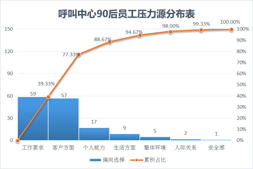 图3 呼叫中心90后新员工压力源分布帕累托图