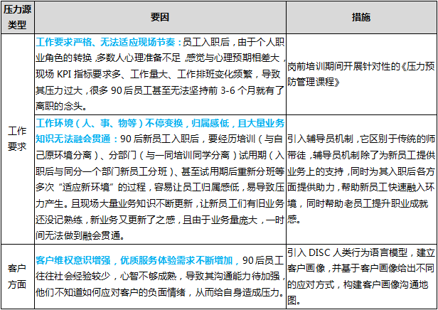 通过上表,我们已经认清导致90后新员工压力源的重点问题和对策实施方向,具体如何实施?让我们接下来看一看:
