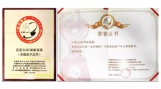 2018“金耳唛杯“中国最佳客户中心:百度云智能客服