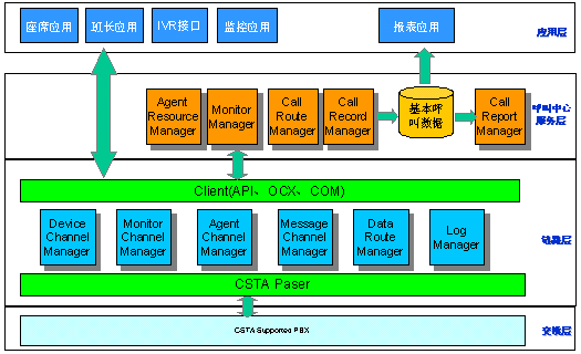 呼叫中心服务层是基于SynRoute CTILink之上的呼叫中心平台,一方面与SynRoute CTILink无缝连接,呼叫中心集成商可以选择呼叫中心服务层为客户快速构建呼叫中心;另一方面,SynRoute CTILink可以不依赖与呼叫中心服务层独立工作。