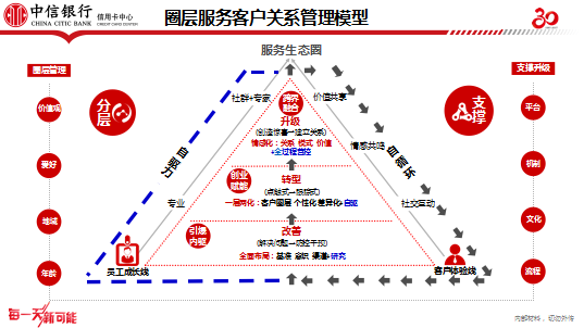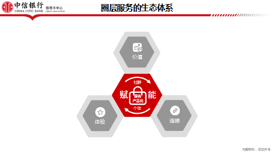 随着移动互联网技术的高速发展及社交工具、社交媒体的应用普及,客户所需要的产品和服务触手可及,他们比以往更容易和那些与自己有相同需求的人进行交流。在互联网科技革命中,中信银行信用卡中心快速聚焦互联网智慧大数据,敢为人先,拥抱互联网,依靠人工智能、大数据等新科技搭建信用卡互联网服务体系,从PC到移动端,全面覆盖整个互联网的生态区域,于是客户服务圈层经营也顺势而生。
