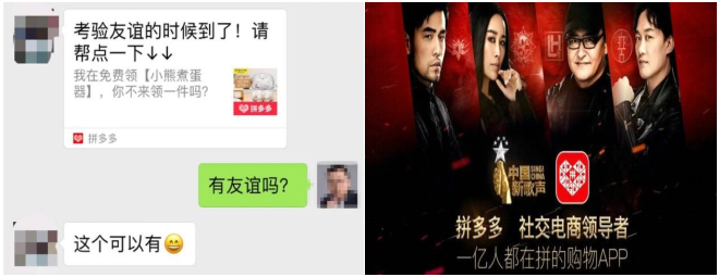 拼多多的脱颖而出并快速成长,主要得益于其独创的社交电商模式。它成功地把网购和微信等社交媒体紧密结合起来,以拼单获取低价为目的,利用微信这样的社交媒体实现了用户数和销售额的爆炸式增长,有人说这是一种类似于“病毒式”的营销。