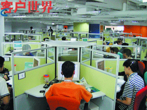 一进盈科的呼叫中心现场,让我觉得很不适应。一是几乎感觉不到“呼叫”中心的气氛。无论是10000还是114,我已经习惯呼叫中心此起彼伏的话语声,这种话语声让我觉得员工们在积极地工作,而在盈科现场,却几乎听不到这种声音,座席代表有的在操作和查询,接听电话的人员音量也很小,不走近根本无法听清他们在说什么。二是人员的年龄,相当一部分座席代表已经人到中年。最让我惊讶的是,居然有一个班组全是盲人,负责的是相对简单的查号业务,他们的电话前,增加了盲文的键盘,帮助他们用手阅读电脑查询的信息。