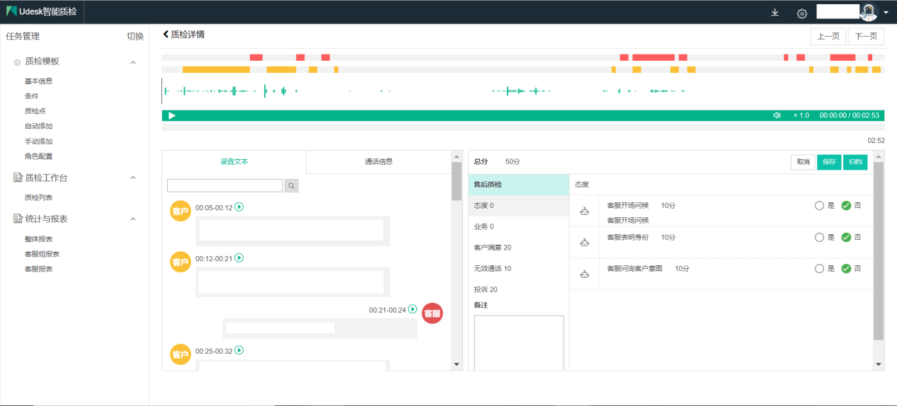 图2:Udesk智能质检系统界面