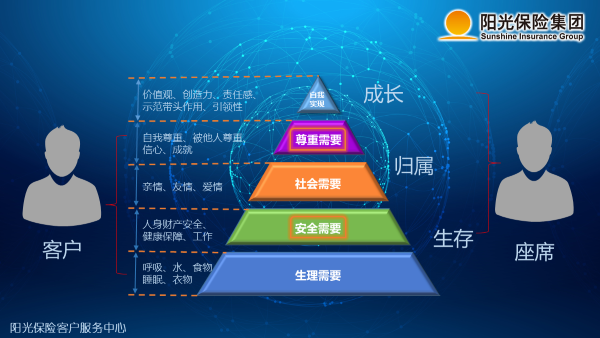 在“尊重需要”层面,客户和座席关注点基本上是一致的,要求的是“被他人尊重”;但在“安全需要”层面客户关注的健康保障、财产所有性等和他购买的产品相关的内容,而座席关注的则是工作职位保障。从这方面讲,虽然都在马斯洛需求的同一个层面,但关注点截然不同,这也就是呼叫中心管理中经常遇到的问题,座席在和客户沟通中没有共鸣,不知道客户想要的是什么。