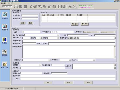 “心”起点健康热线电话管理系统主界面