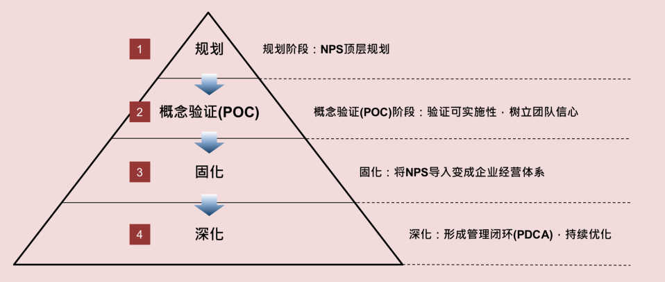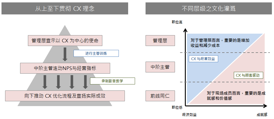 因此,在搭建NPS体验管理机制的过程中,有了完善的体验蓝图及追踪监测系统之后,不要忘了落地并运营这一整套体系的仍然是人,最终企业能否实践客户导向经营,并藉由客户忠诚获得长期成长,关键就在于建立一个以客户为中心的企业文化。