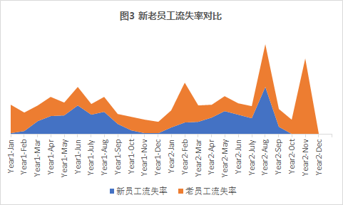 1、老员工的流失率其实是大于新员工的;