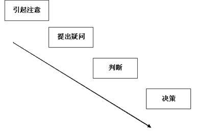大家可以参看图一与图二,你会发现它们的共同点都有“引起注意”这一项,销售方需要创造条件引起客户的注意即兴趣,而能否成交则需要看客户方的“注意力”是否集中,是否有了“心动”的感觉。