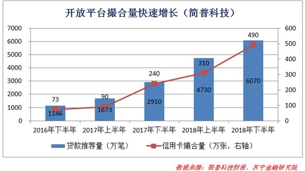 以简普科技为例,2016年下半年以来,短短两年,半年度贷款推荐量膨胀了近6倍,半年度信用卡推荐量胀大了近7倍。