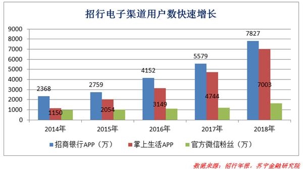 自2014年以来,招商银行APP、掌上生活APP和官方微信三个渠道用户数一直保持快速增长,早在2014年,其官方微信粉丝就突破千万。大概只有充分享受过用户数快速增长的好处,才会促成招行的战略转变——以月活用户为北极星指标。
