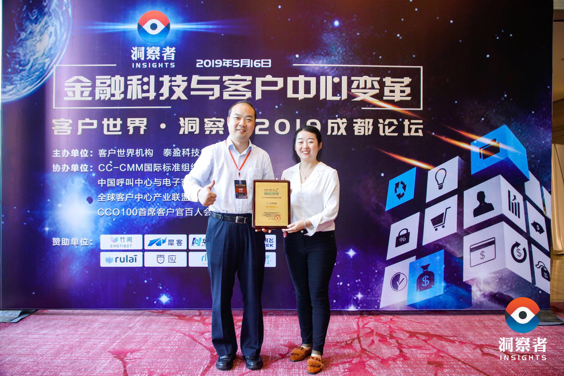 2019年5月16日,成都。客户世界消息:客户世界 · 洞察者2019成都论坛今日在世茂成都茂御酒店圆满举行。会上发布了《客户世界》编辑推荐:2019年度“智能客服”推荐品牌榜。
