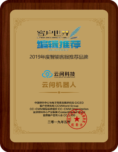 转载请注明来源:云问机器人入选《客户世界》编辑推荐: 2019年度“智能客服”推荐品牌榜