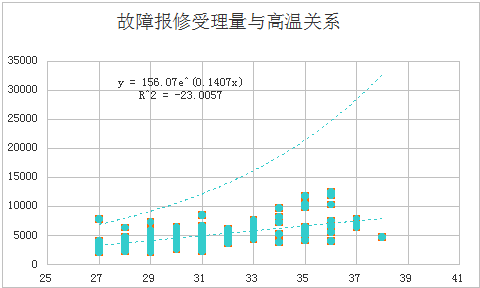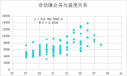 工单类型及分类可间接体现每通电话客户来话的原因、需求、诉求。这其中,可通工单类型数量占比分析出电话客户来话习惯规律,及工作中问题专项提升方向等其他角度分析挖掘。对于话务预测工作而言,可根据工单类型数据占比反推出当日哪类因子影响当日话务量造成峰涌,以及证明、校验各类因素对话务量影响的维度关联。以2018年某地全年话务量为例,由下图可见(图3、图4),受高温天气因素影响,气温越高,工单量也呈上涨趋势,其中故障类工单数量较多,约占总工单量的40-50%,而其他类工单也受此因素影响呈上升的趋势。由此看出,工单量可以反推出当日话务量。