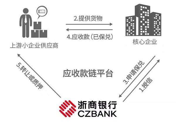 先来看看浙商银行应收款链平台能做哪些:核心企业签发的区块链应收款在上下游商圈内流转,可随时对外支付和融资,实现圈内的“无资金”交易,减少产业链条上企业总体的外部资金需求。
