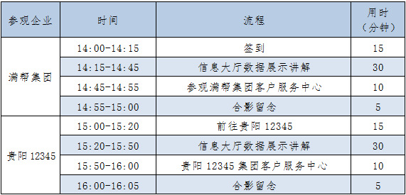 1.自行到满帮集团客户服务中心现场的与会嘉宾需要提前十五分钟到现场并进行签到等候,等会和坐大巴到现场嘉宾后,满帮集团客服中心工作人员会安排参观并进行现场讲解。满帮集团参观结束后,众嘉宾可以坐大巴前往贵阳12345现场参观交流。