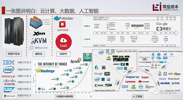云计算、大数据、人工智能其实是有发展路径的。基础软件的革新,其实带动了上层应用的变化。美国上市公司,大市值的信息技术公司无不是基础核心软件以及复杂应用的原厂商。