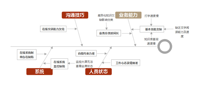 根据现场调研等方式,我们汇总出影响人工服务效能水平4大类因素及9子因素,并绘制鱼骨图如图1所示。
