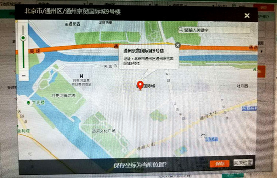 (2)加入地图扎点功能:除去原来的手动录入地址外,新增地图直接扎点功能,点击现场地址,即可出现地图,拖动扎点到合适位置,确定后即可出现具体地址,减少人工输入,避免晦涩的地址难以匹配,如下图所示: