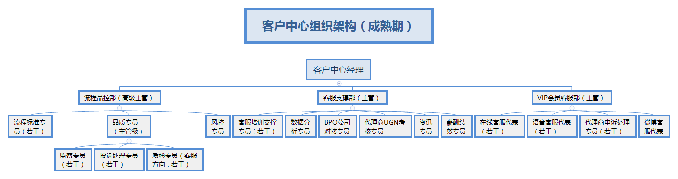 当然组织架构的确定、岗位说明书的制定、人员的招聘及培训客服中心是无法独自承接的,必须与人力资源共同规划确定。