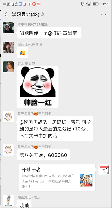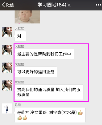 2、员工在参与活动的过程中,鼓励员工实时分享课程学习进度及心得体会,在你追我赶的环境中,培养话务代表主动学习、主动分享的习惯。