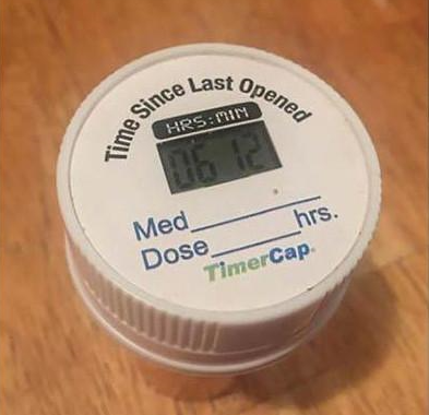 瓶盖上有计时器,可以记录最后一次打开药瓶的时间,同时具有提醒功能,老婆再也不用担心你忘了吃药了。