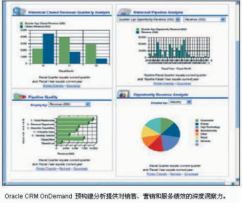 Oracle的集成化CRM解决方案包含了从销售、市场营销和电子商务到客户服务、多渠道交互和分析在内的全面的CRM功能,可满足营销、客户支持、付款处理以及电子店面创建的需求。与竞争对手相比,Oracle 对于特定行业所面临的独特挑战有着更加深刻的认识,即Oracle了解特定行业以客户为导向的程序,例如通信行业的订单管理、汽车行业的租赁到期管理、及接待业的团体销售与事件管理等。随着业务和市场状况的变化,Oracle 解决方案也在不断改善,以便在较长时间内满足新的要求并降低风险。目前,Oracle提供了适合于各种预算方案和IT需求的灵活定价模式。