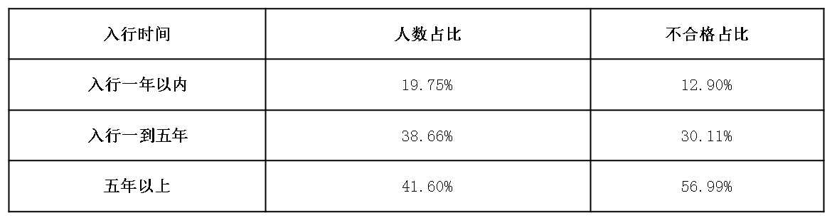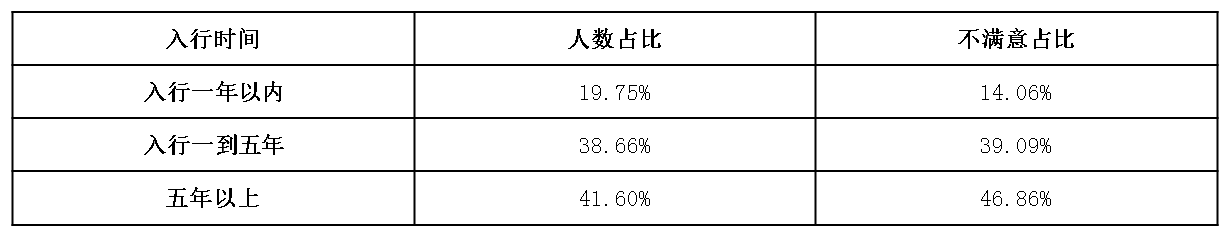 (二)人员分布上,入行五年以上老员工是服务品质重点关注群体(表4)。