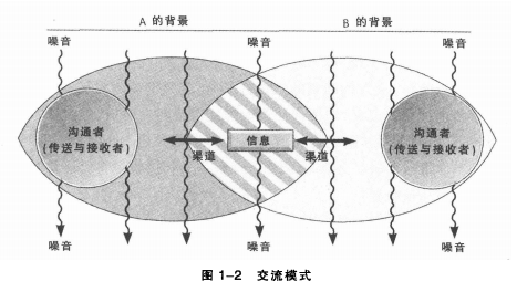 在交流模式中,我们的沟通过程在传送信息的同时也在接收信息,交流模式以“沟通者”取代“传送者”和“接收者”,并且认为沟通者几乎是同时传送和接收信息,而不是单一方向,交替进行。