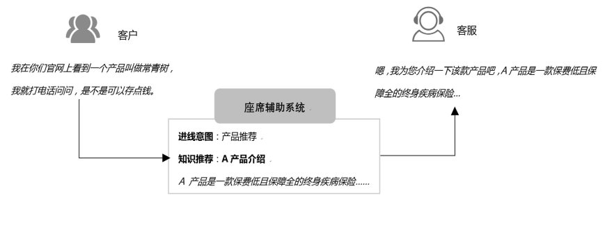 座席辅助系统是基于客服和用户对话的实时场景,通过可视化的界面实时监测并提示客服关键信息点,帮助客服及时补充/修改表达内容,输出完整的对话流,进而优化服务质量的产品,该产品背后离不开深度学习,自然语言处理,ASR,意图识别等多项技术的融合,它比较贴合的业务场景如电话销售,VIP客服服务等AI电销难以发力的地方。