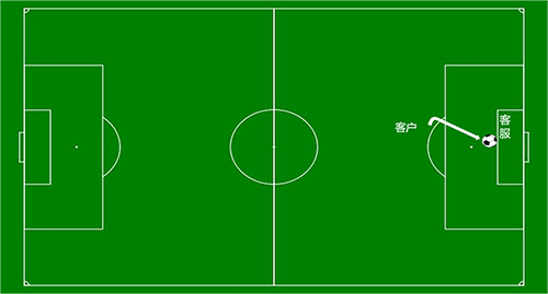 这就好比一场足球比赛,客户是前锋,客服是守门员,球就代表着客户的问题,前锋临门一家射门,作为守门员这个时候,你要干什么?第一反应是抱住足球,但问题是现实比赛中有多少射门守门员能有十足的把握抱住呢?对于问题而言,如果能够被服务人员稳稳的接住,那就等于客户对于解答就满意了,课大部分时候客户的问题是香蕉球、是回旋球,这该怎么办,扑出去吧!扑出去就如同前面所说的堵或者推,服务人员经常用推责任的方法对待客户的问题,这种推卸责任的方式在不损害客户利益的前提下是没有问题的,但是推卸责任要看往哪里推,就像守门员把射向球门的球扑向哪里,能扑给前锋吗?不能,因为前锋就是客户,客户说你们家手机质量有问题,你就说是客户自己摔坏的,客户会认吗?你把球扑向前锋,前锋会补射一脚让你措不及防。那就有人会想到扑给后卫队友,也就是咱们服务中经常说到的合作单位、协同部门、内部同事,这样是不是就可以万事大吉了,其实也不然,因为当你把球扑给他的时候,他可能就在前锋不远的地方,他能不能处理好球,处理不好是不是有误传给对方前锋的可能,是不是有被前锋抢断的可能。想把问题推给其他同事、其他部门没有问题,问题的你要确定其他同事、部门和你有相同的问题处理理念和目标,并且他们有能力处理好这个问题,这往往是客服掌控不了的(图1)。