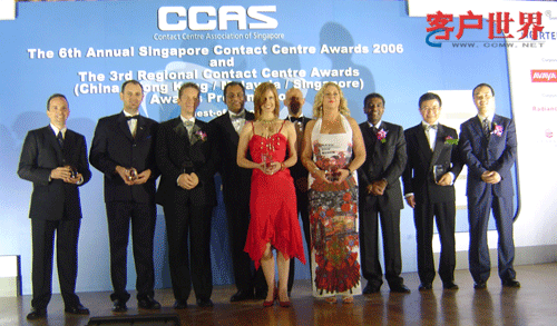 2006年10月27日,新加坡。[客户世界消息]第三届亚太地区最佳呼叫中心评选颁奖典礼今天在新加坡Ritz Carlton酒店隆重举行,中国呼叫中心行业协会CNCCA组团出席。