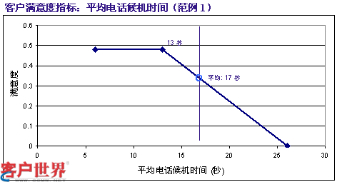 管理的工具或手段并不一定要复杂,只要具有一定科学性,且简单实用就好了。例如,曾有一家跨国公司的客服中心请我帮助他们提高客户满意度。当时,拨打电话到他们客服中心的客户的平均候机时间是17秒钟,他们需要了解平均候机时间缩短到几秒钟才能满足客户的基本需求。通过简单的满意度测试,再运用我们的咨询系统进行模型建立及分析,我很快找出了提升该项指标的满意度的最佳方案(见下图:范例1)。