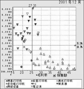在实际的案例中,我们利用Oracle 9i搭建了数据仓库,Microsoft Analysis Service 2000搭建了多维数据库,ProClarity 6.0 作为客户端分析软件。