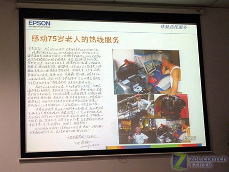 这是一位与北京相隔千里的上海老人,他在使用爱普生打印机时出现了问题,而他本人并不会使用视频交流软件,爱普生热线服务中心的工程师耐心教老人使用软件,并在视频中知道老人完成了故障的查询与修理,事后老人特地邮来表扬信,以示感谢。