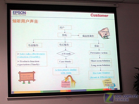实时对用户问题进行监控,提高预警能力,及时反馈到相关部门,采取积极的行动,防止问题的再度发生;定期对用户问题进行总结,将答案及时公布在爱普生中文主页或传真回复系统。