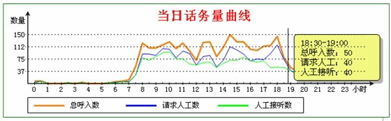 3.3 呼叫监控。系统随时提供话务曲线,反映95598热线整体的服务水平,如下图: