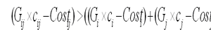 同样是这样一个公式,如果企业通过自身业务系统的改进,或者能够提供交叉的服务,使得Gi和Gj能够合并得到Gij,那么此时虽然新的cij可能比ci或cj小,但如果这种合并能极大的降低服务成本Costij,并且得到: