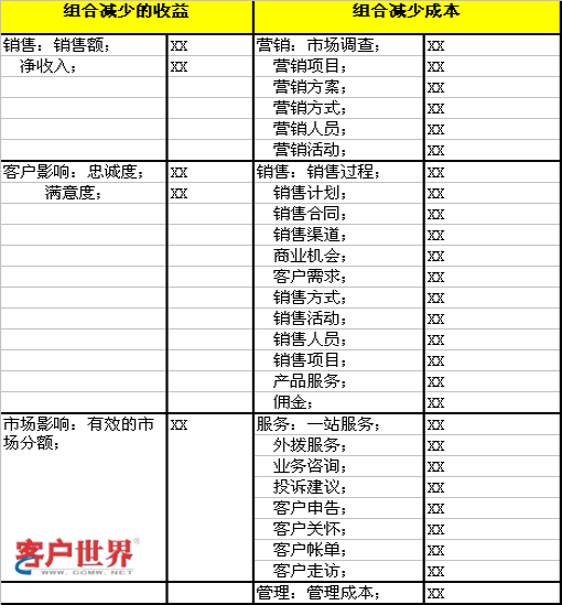 的下降小于由于客户组合带来的成本下降,那么就有必要组合;
