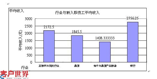 银行业的招聘“挑战”最大。不少呼叫中心处于人员“不饱和”状态。企业对新人的岗前培训时间差异很大:最少5天,最大58天。多数呼叫中心离职率15%,平均值11%,离职率与收入水平有明显关系。不同行业收入平均水平差距在1300元左右,最低的为电子与通信产品制造业,为1408.33元,最高的在银行业,为2756.25元。