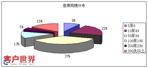 银行、电信、制造业为主的大、中规模呼叫中心,84%的受访呼叫中心规模在500人以下;501-1000人的呼叫中心占4%;1000人以上规模的呼叫中心占12%。呼叫中心与各部门的沟通传递渠道中,电子邮件的使用最为普遍。调查还发现,大规模呼叫中心正倾向于将呼入、呼出功能分开。