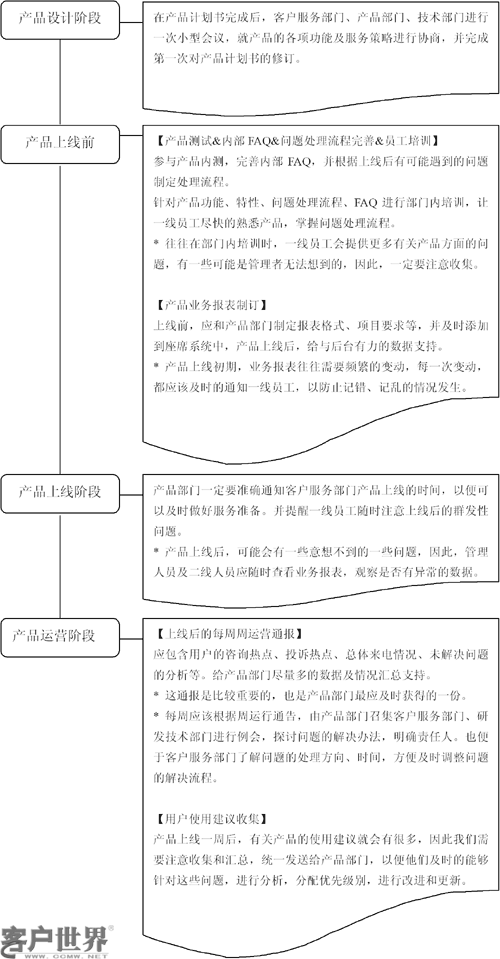 因此,客户服务部门需参与产品上线前的内测,为以后的客户服务打下良好的基础。