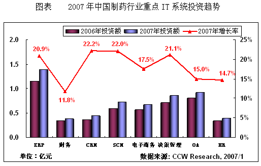计世资讯(CCW Research)研究认为, 2007年面对制药行业并购重组日益加剧的局面,制药企业迫切需要整合自身资源, 强化企业内部各个方面的管理能效,制药企业战略重点不得不从以产品为中心向以客户为中心转移。特别是加强客户关系管理及其重要,这是由于制药行业实现客户关系管理的最终目标是挖掘潜在客户价值提高利润、降低成本、扩大市场份额。 因此2007年制药企业采用CRM系统固化先进的管理理念,无疑是应对激烈竞争并制胜的有效途径,并购重组加剧促使CRM系统快速增长,制药行业内部并购重组竞争加剧为CRM系统带来更多市场机会。