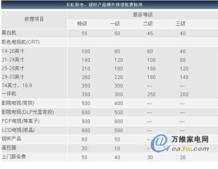 8、“服务等级”根据长虹授权服务商的服务资质评定。