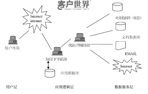 知识管理系统(见下图)主要是通过企业知识门户实现的。企业知识门户的核心技术层包括搜索引擎、知识门户构造器和门户应用模板库三部分。搜索引擎是最关键的技术,它对组织中的知识与技能进行自动编目并提供搜索引擎供他人使用;知识门户构造器提供创建个性化知识门户的机制,是用户的访问中心和活动场所;门户应用模板库提供一系列支持人们交流和协作的应用模板。