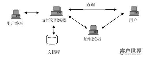 3)办公台:包括邮箱、个人文档库、公文处理库、正式文档库,是系统用户处理日常办公事物的主要场所。邮箱处理所有发送给用户的文件、通知、催办等邮件;来件提示功能提醒用户及时处理任务。用户起草公文在个人文档库中,为本地用户私有。公文处理库接收各用户提交的草稿,在公文流转的过程中,自始至终仅产生一份文档,通过邮件通知应用流程所指定的接收人。公文流转的各个环节和状态都记录,通过公文处理库中的查询功能,可以查询和监测公文的处理情况,以便催办、反馈。所有归档的文档移交档案库,档案库中的文档都有版本控制和权限控制,以供查询、检索。