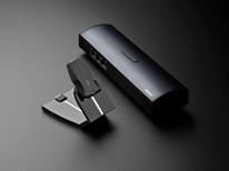 与JX10相匹配的固话蓝牙连接器也以一身黑衣亮相,外型流畅,它的体积很小,但匣中暗藏玄机。可以直接放在抽屉中或者桌下,因此它在办公室的使用将非常方便和简洁。