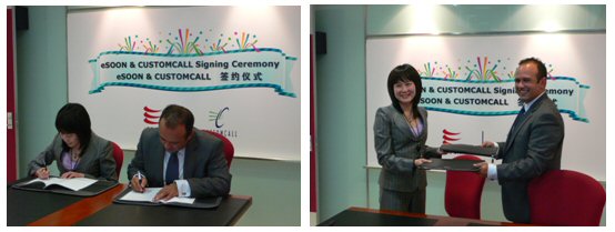 2007年5月16日,亿迅中国软件有限公司北京分公司的会议室里花团锦簇,eSOON与Customcall公司的签约仪式在和谐融洽的气氛中进行。双方先对未来的合作发展进行了讨论,10点58分,亿迅公司CEO李冰影女士与澳洲Customcall CEO Mike Adams先生在购买EZactor的合约上签上了字,这标志着亿迅自主研发的呼叫中心CRM产品-EZactor成功进入国际市场,也是中国的民族品牌软件进入国际市场。