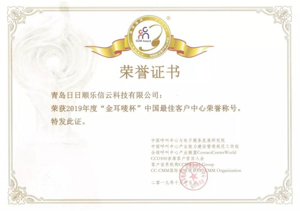 10月15日,2019第十五届“金耳唛杯”中国最佳客户中心评选颁奖典礼在北京-荣华天地酒店举行。日日顺乐信应邀出席,并获得中国最佳客户联络中心——卓越客户体验荣誉称号。