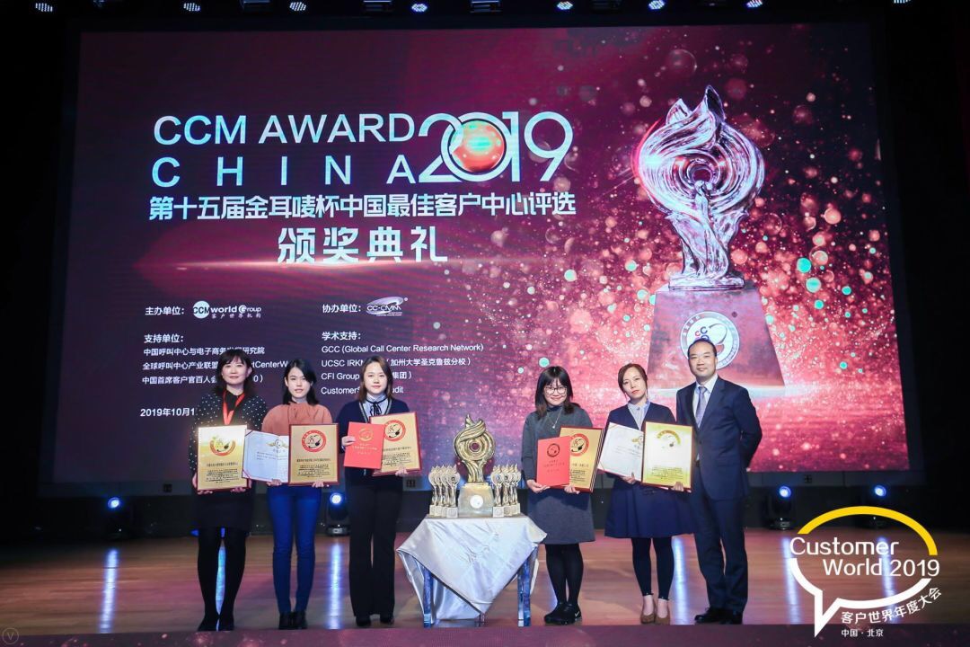 10月15日,北京。客户世界消息:2019第十五届“金耳唛杯”中国最佳客户中心评选颁奖典礼在北京-荣华天地酒店举行。中国工商银行、中国民生银行信用卡中心、联想集团、美的集团、方正集团、美团点评、度小满金融、友邦保险、伊利、惠氏、小米、中信国安·鸿联九五、泰盈科技、国家电网公司、南方电网公司等一批知名企业的客户中心获得各奖项荣誉。